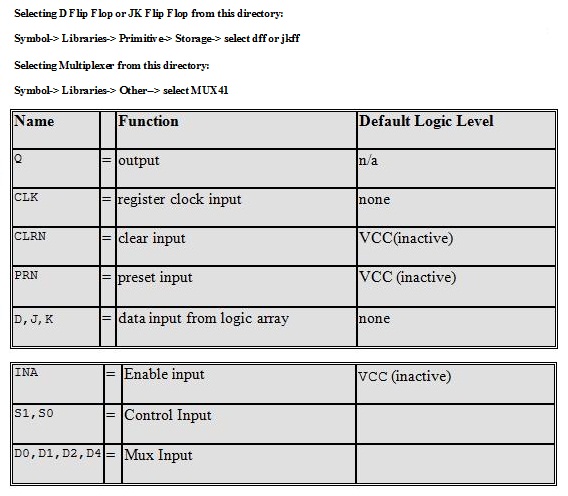 The description of D Flip-Flop and 4:1MUX in Quartus II can be