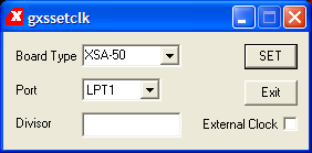 The XESS GSXSETCLK is the utility program which also controls whether or not an external clock is used.