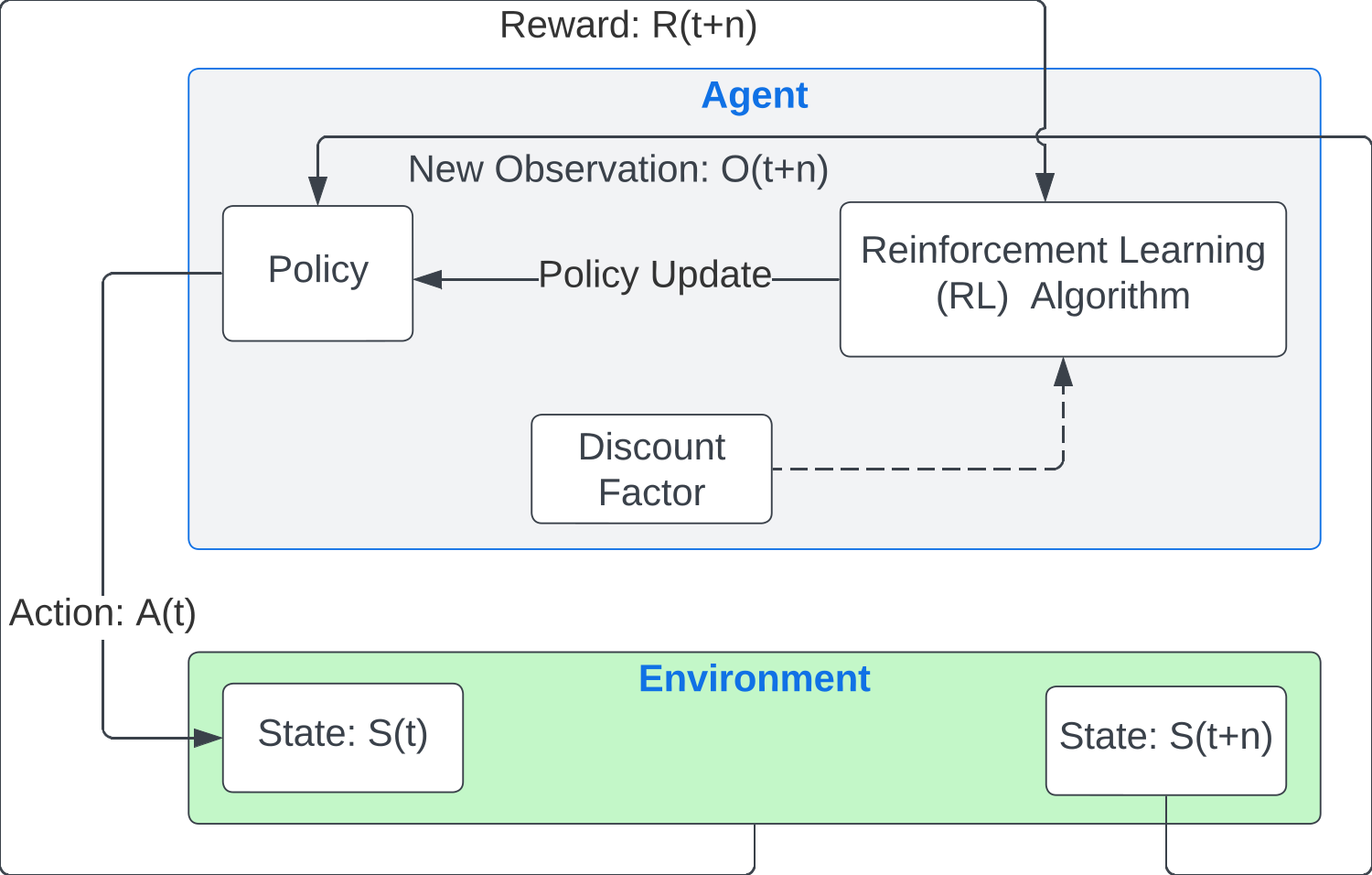 - \( R_t \): Reward at time \( t \), based on the system's performance.