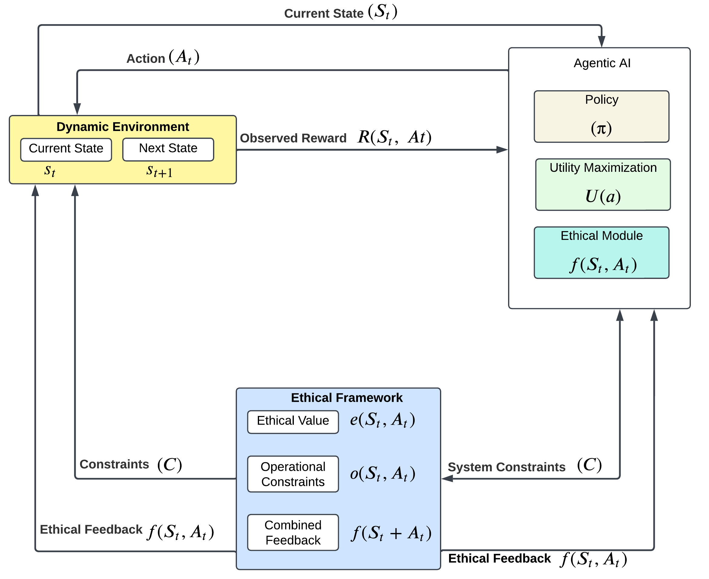 Agentic AI systems are modeled to maximize utility functions while maintaining ethical and operational constraints: