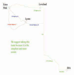 DIA to Estes Park via Loveland (Scenic Route, 10 minutes Longer)