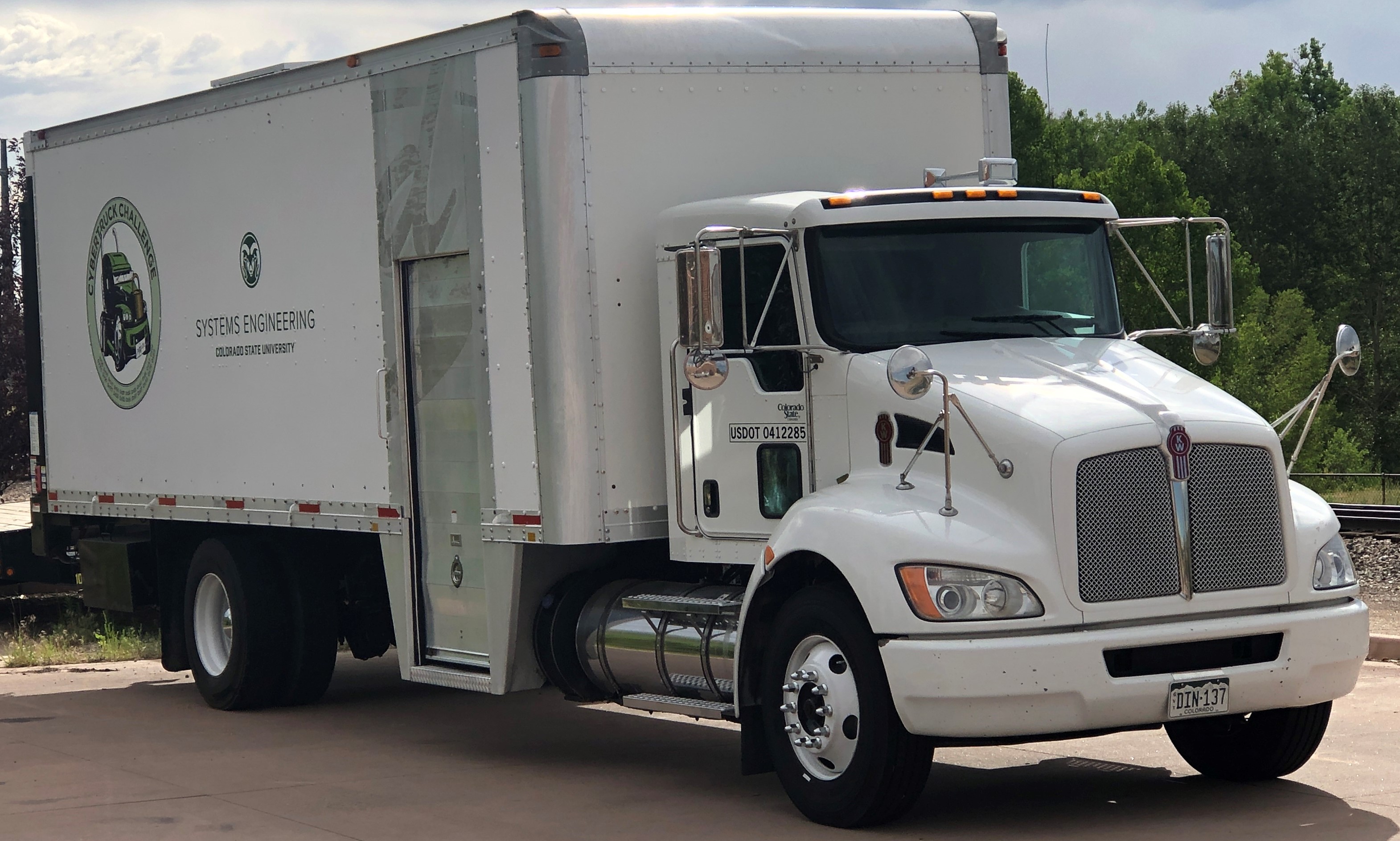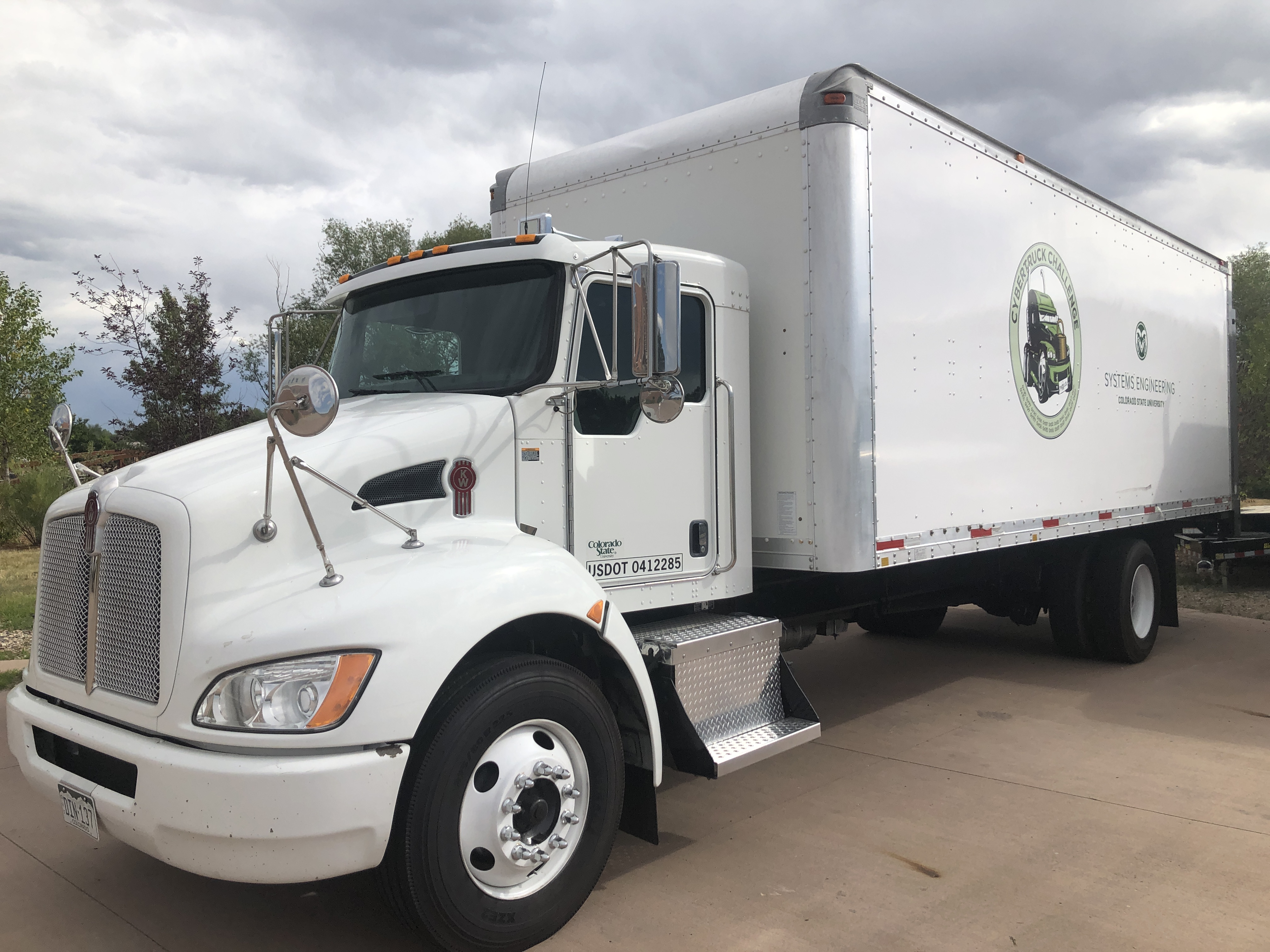The CSU CyberTruck research vehicle is a 2014 Kenworth T270 Class 6 box van truck. It has about 250,000 miles (in 2022) on the chassis. Dr. Daily purchased the vehicle from MHC Kenworth in 2019 shortly after he arrived at Colorado State University. The truck is powered by a PACCAR PX-7 engine, which is a rebranded Cummins 6.7L ISB engine. The engine is connected to an Allison 2100RDS transmission and it has Bendix controlled air brakes. The systems communicate with each other using 250kbps J1939. The VIN is 2NKHHM6X2EM406412.