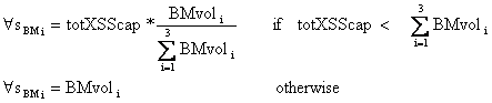 This excess capacity is used to transport the sediment from the bed-material in the source cell. The volume of size fraction i transported from the bed-material, "sBMi, [m3] is found as: