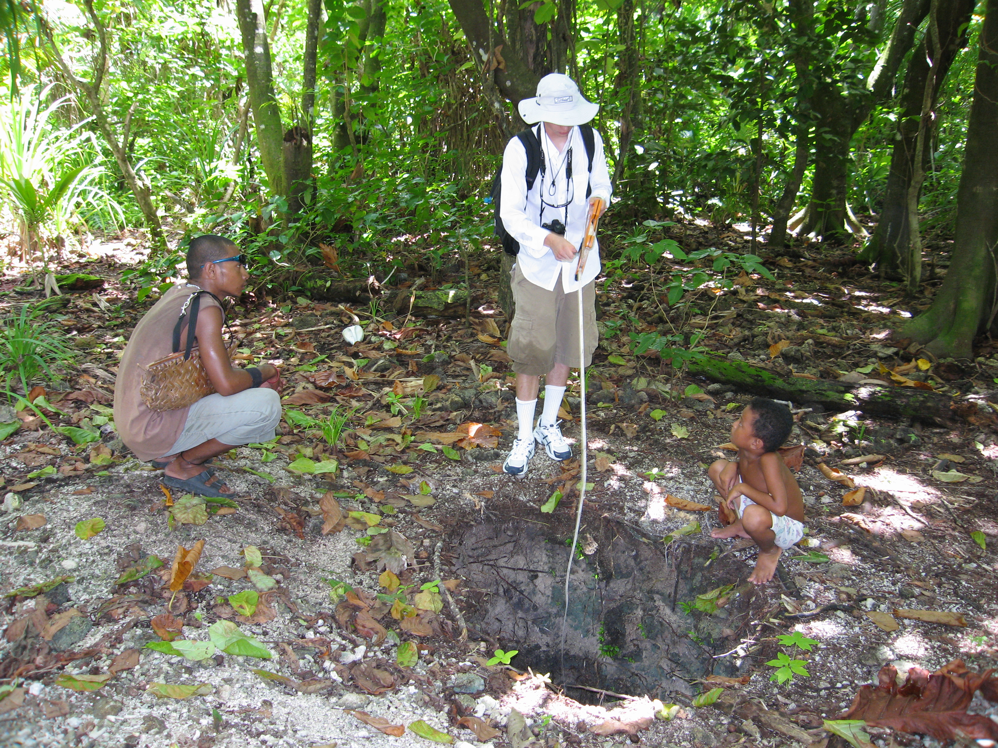 Using the USGS SUTRA numerical model, which simulates density-dependent groundwater flow and solute transport, the dynamics of the freshwater lens of atoll islands is simulated during average climatic conditions and drought conditions. Using modeling results, a simple algebraic model was developed, which relates the freshwater lens thickness to island width, annual rainfall rate, and geologic characteristics (reef flat plate presence, hydraulic conductivity, etc…). Results demonstrate the fragile existence of the lens, with drought conditions causing complete depletion of fresh groundwater for most of the islands of the Federated States of Micronesia. Current work deals with estimating future groundwater resources as influenced by sea level rise and variable rainfall patterns. - Recovery of atoll island aquifers after marine storm-surge overwash events
