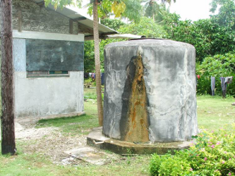 Another threat for atoll island fresh groundwater is marine storm-surge overwash events, in which the island is inundated with seawater. Seawater infiltrates the ground surface and mixes with and salinizes the fresh groundwater, thereby destroying an important water source for island residents. Simulation results for a 400-m wide island show that months to years are required for complete recovery of the aquifer and build-up of the freshwater lens after an overwash event. The following figure shows the salinization and recovery of the freshwater lens during and after an overwash event. Current work is aimed at performing an overwash-recovery analysis for different sized islands in different climatic regions. - Rainwater catchment systems supply of island communities within the Federated States of Micronesia